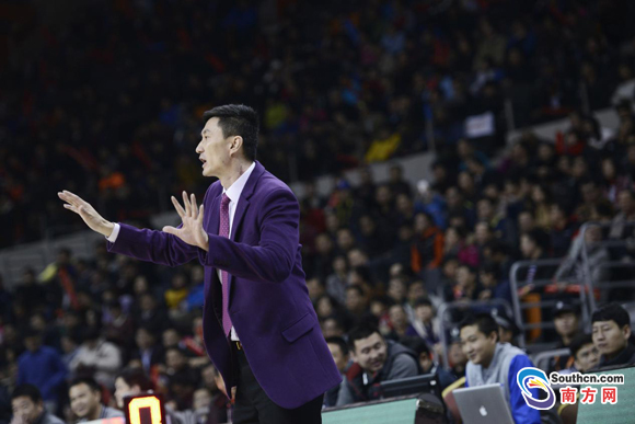 杜锋在指挥比赛,龚名扬摄