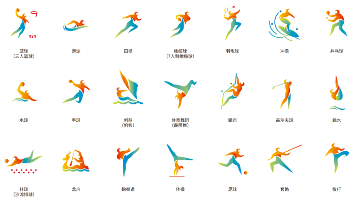 汕头2021亚青会体育项目运动图标在与赛会其他视觉形象元素结合使用时,具有极强的象征性和感染力。体育项目运动图标超越了语言文字的局限性,将广泛应用于汕头2021亚青会的场馆及道路指示系统、出版物、广告宣传、环境布置、电视转播、市场开发、纪念品设计等领域,是汕头2021亚青会视觉形象与景观设计的重要组成部分,也是传播主办城市文化和汕头2021亚青会理念的重要载体。