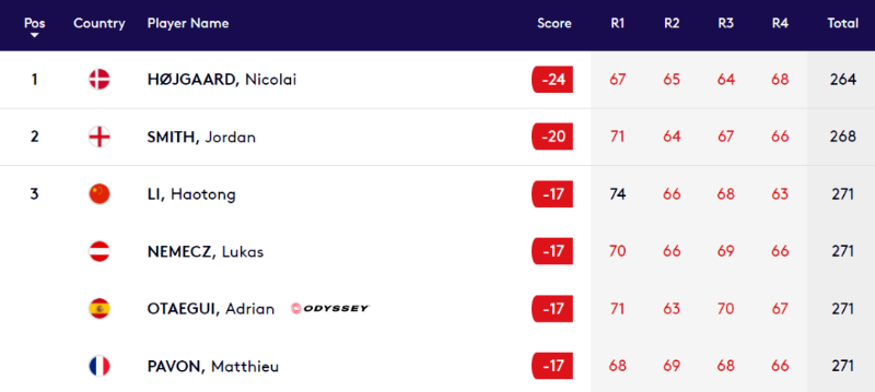 目前李昊桐还剩一场享受特殊豁免的比赛——拉斯海玛精英赛(本周比赛将继续在阿尔哈马拉高尔夫球俱乐部举行),希望昊桐能延续好状态,再次斩获佳绩!(积分数据整理自DP世界巡回赛官方)