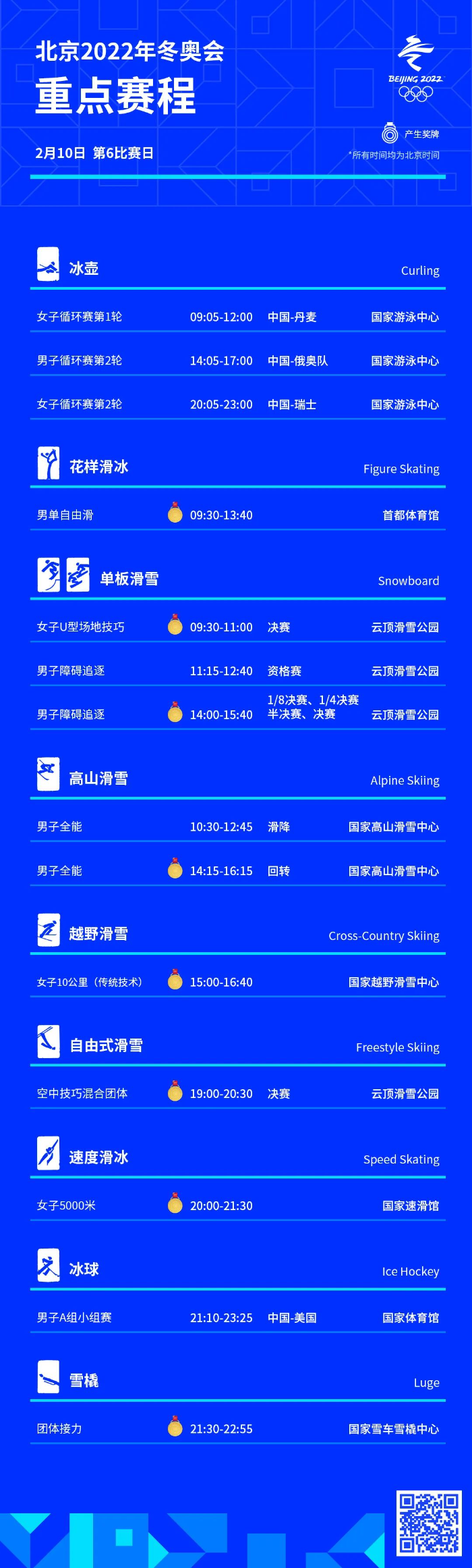 【北京冬奥会】2月10日赛事预告(附冲金点,广东选手出战)