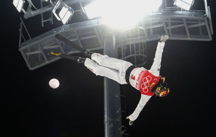 2月14日,北京冬奥会自由式滑雪女子空中技巧决赛,中国队选手徐梦桃在比赛中。新华社记者肖艺九摄