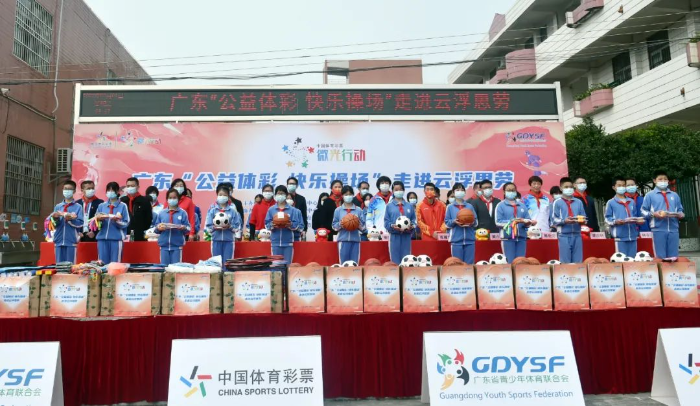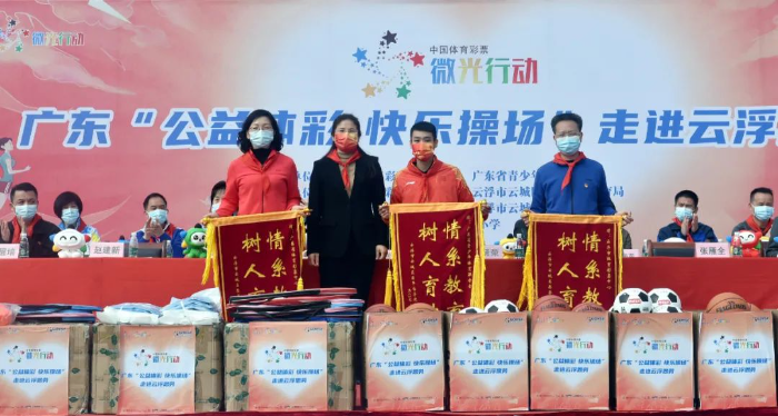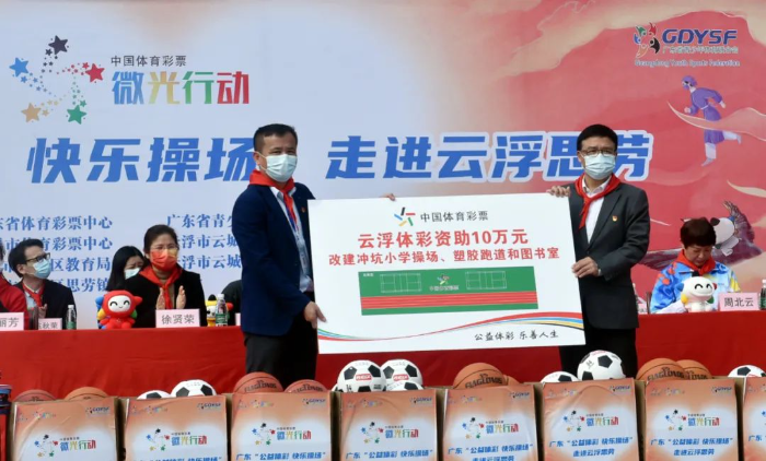 这是由广东省体育彩票中心、广东省青少年体育联合会主办,云浮市体育彩票中心协办的中国体育彩票微光行动之广东“公益体彩 快乐操场”公益活动。“微光行动”是由国家体彩中心统筹,在全国范围开展的公益系列活动,旨在与人民共享体彩发展成果,传递体彩公益力量。