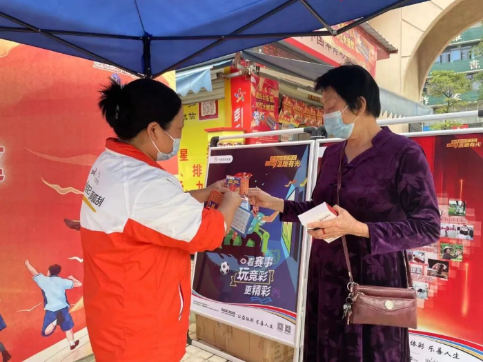 日前,由揭阳市体育彩票中心协办的“微光行动之2022年广东公益体彩进社区活动”在市区东风体育广场开展。揭阳体彩第一时间在疫苗接种地点前搭建了“中国体育彩票”标志的遮阳遮雨棚,还为前来接种疫苗的市民派发了体彩10亿大派奖等宣传单、即开型体育彩票以及若干小礼品。
