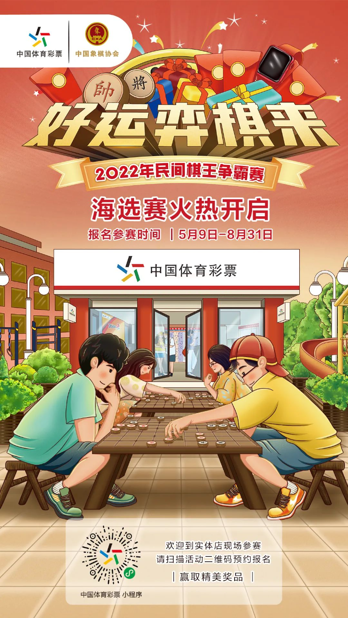 多年来,为深入推动全民健身、进一步弘扬中华民族悠久的象棋文化,中国体彩持续助力全国象棋民间棋王争霸赛,致力于为普通棋迷打造一个接地气的赛事平台。按照国家体彩中心的统一安排,2022年5月-9月期间,广东体彩在全省范围内开展“好运‘弈棋’来”——2022年中国体育彩票全国象棋民间棋王电视争霸赛。
