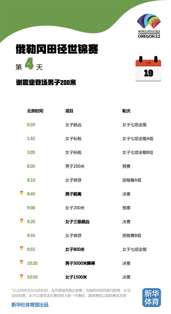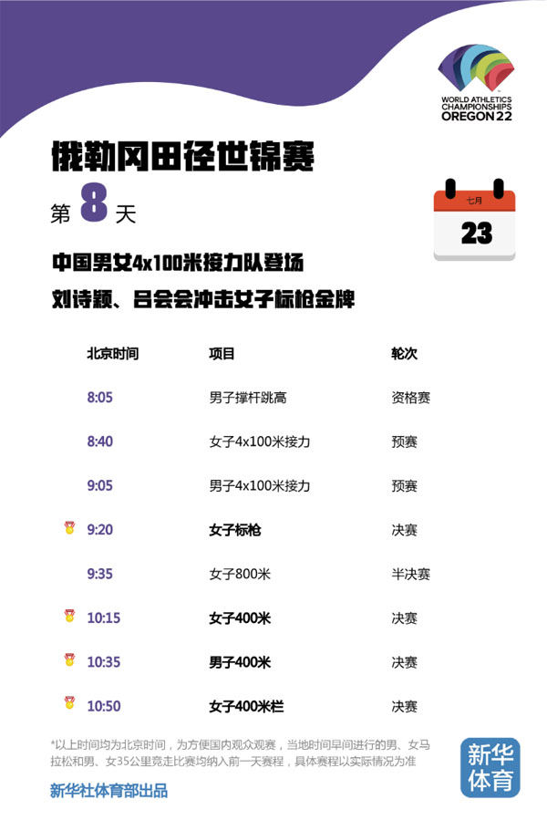 时差算不清?北京时间版2022田径世锦赛赛程表来了