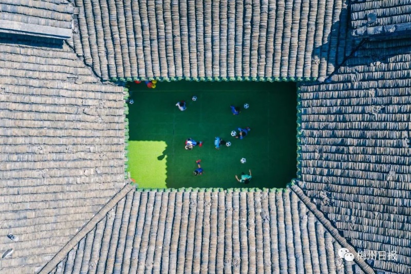 在梅县区一座小小的老屋内,小球员们追逐着自己的足球梦。(梅州日报记者连志城 摄)