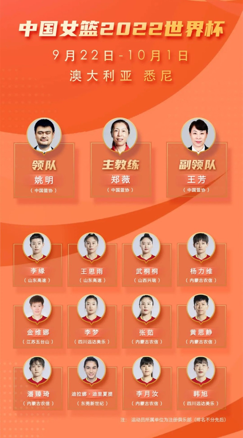 中国女篮公布世界杯参赛名单,东莞四女篮国手出征