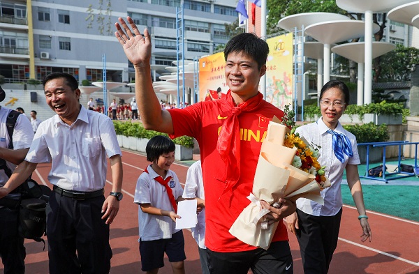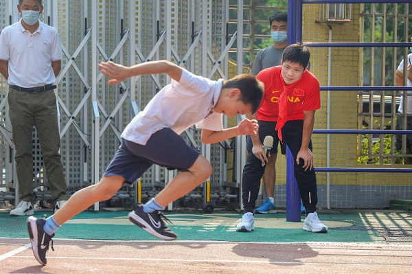 “亚洲飞人”苏炳添走进华师附小