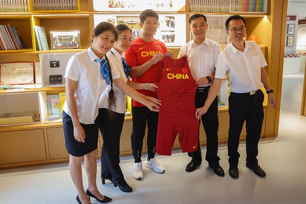 与学生互动结束后,苏炳添参观了华师附小的校园,尤其是该校颇具特色的博物馆和校史馆,并与校长座谈,双方还交换了纪念品。
