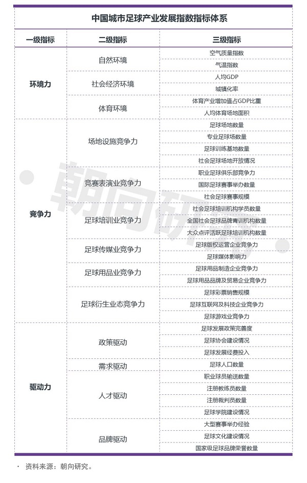 《报告》从自然环境、社会经济环境和体育环境三个方面来评估足球产业发展的环境力。