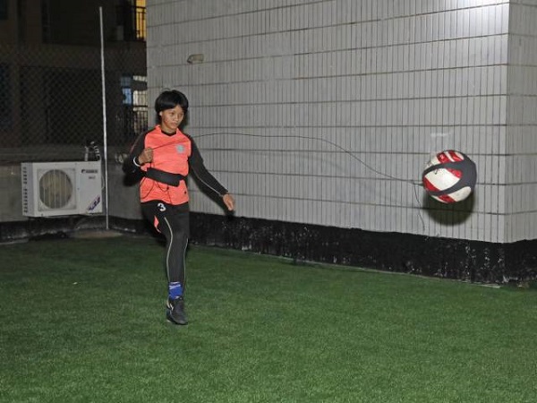 “虽然舍不得放下舞蹈,但我们尊重孩子的选择。”父母的尊重不仅体现在言语上。为了支持女儿踢球,他们花费了5万多元,在家楼顶铺了140多平方米的人造草坪,并安装了围网和灯光。