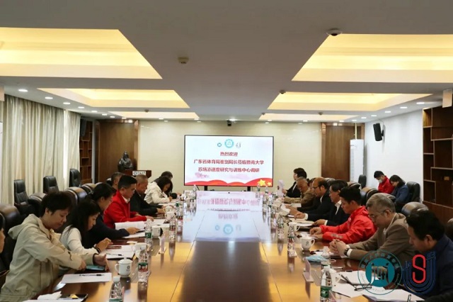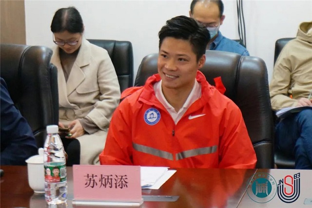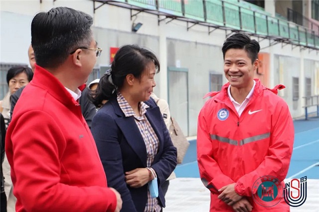 2月25日下午,广东省体育局局长崔剑一行到暨南大学苏炳添速度研究与训练中心调研指导。暨南大学党委书记林如鹏,广东省体育局局长崔剑,广东省体育局副局长林瑛,广东省二沙体育训练中心党委书记刘小青,暨南大学体育学院苏炳添教授等参加本次座谈会。