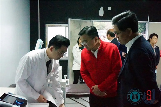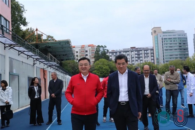 座谈会后,广东省体育局局长崔剑等一行,暨南大学党委书记林如鹏及参会成员共同参观了暨南大学苏炳添速度研究与训练中心交叉学科实验室(质谱仪器与大气环境研究所),随后前往暨南大学苏炳添速度研究与训练中心,观摩田径队训练课程并参观康复训练室。