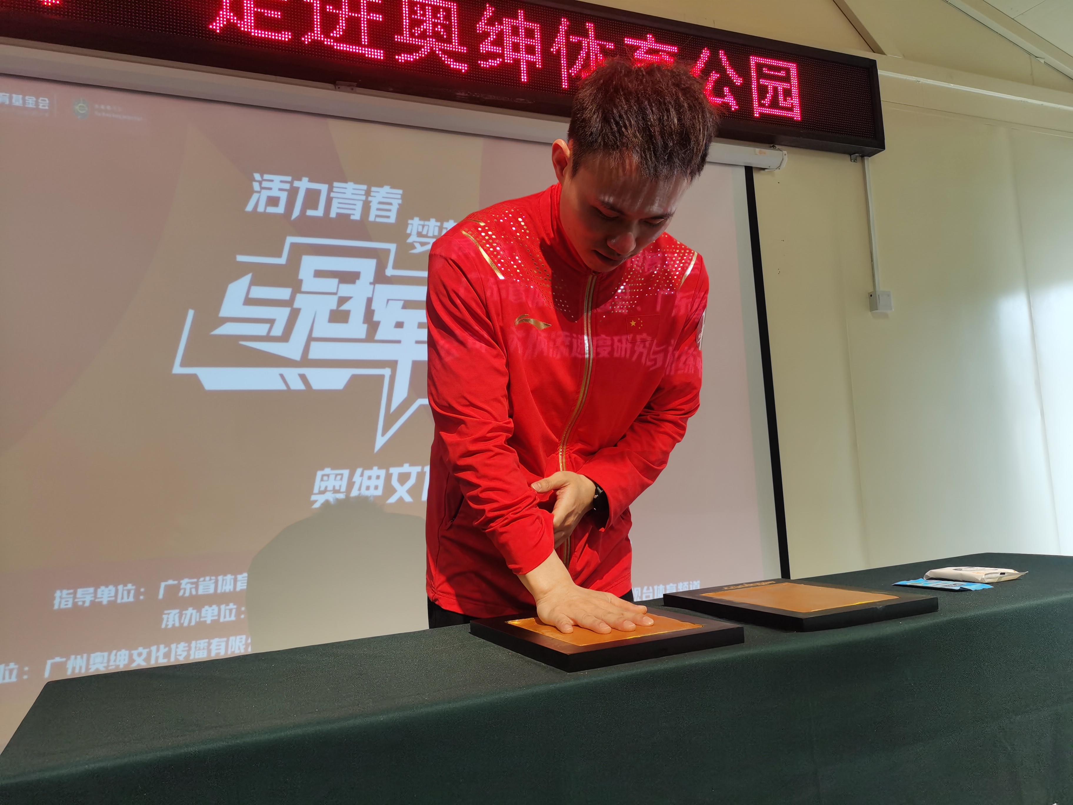 谢思埸现场分享了他的冠军故事,并为体育公园按下金手印。在得到奥运冠军的鼓励后,现场大学生们激动不已,纷纷与谢思埸合影留念,谢思埸也满足其需求。谢思埸表示,这次活动非常有意义。“我也在关注大学生创业、就业情况,同学们可能会迷茫,也会觉得找不到出路,我希望他们能增强自身技能、学习体育精神、提升心理承载能力,做好人生规划,借助良好平台作为跳板,发挥自身优势,克服困难,实现梦想。”谢思埸说。