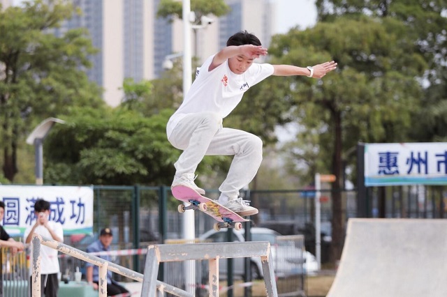 粤港澳大湾区滑板公火热开赛 极限运动好手齐聚惠州