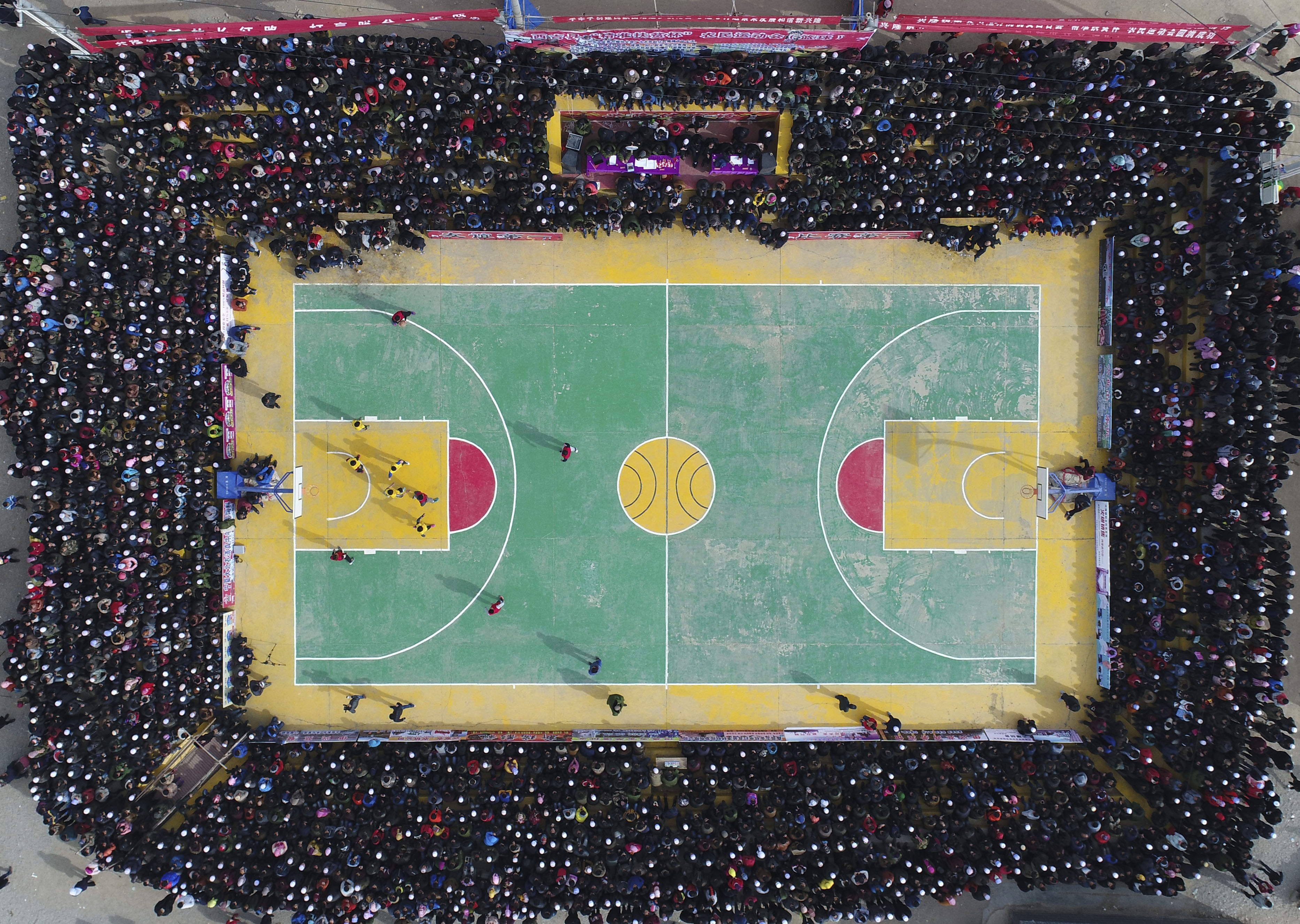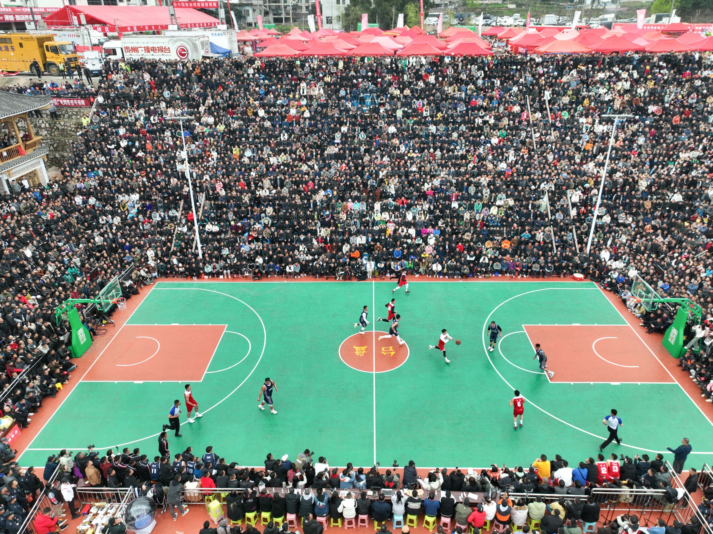 3月27日,贵州省首届“美丽乡村”篮球联赛总决赛拍摄的比赛现场(无人机照片)。新华社记者欧东衢摄
