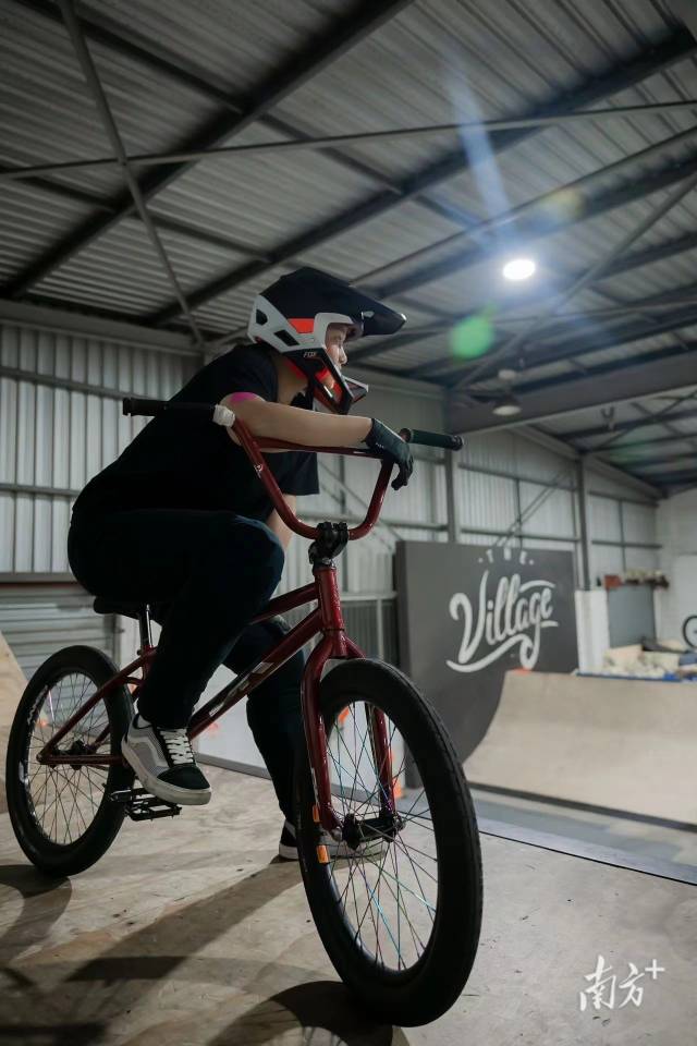 2017年,自由式小轮车“入奥”;2018年,广东省正式成立小轮车队自由式组(队),当时年仅13岁的周惠敏被输送到省队训练,开始转战半管道式小轮车。训练时,周惠敏需要在一个U型场地内不时腾空、下落、旋转、跳跃,利用惯性做出各种翻转动作。