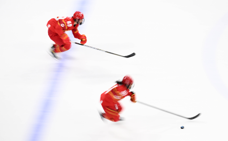 中国女冰健儿在赛场上快速穿梭。 新华社发