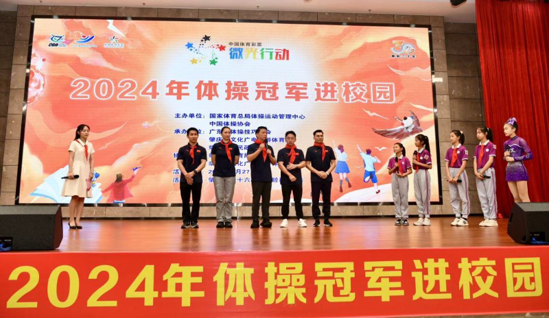 为进一步弘扬冠军精神,加强青少年体育工作,推动体教融合,趁2024年全国体操锦标赛暨巴黎奥运会选拔赛在肇庆举办的良机,4月27日,中国体育彩票“微光行动”2024年体操冠军进校园活动在肇庆市第十六小学(睦岗校区)举行,通过冠军公益讲堂等活动,分享励志故事,鼓励学生们积极参与体育运动,养成终身锻炼的习惯,从体育教育中获益。