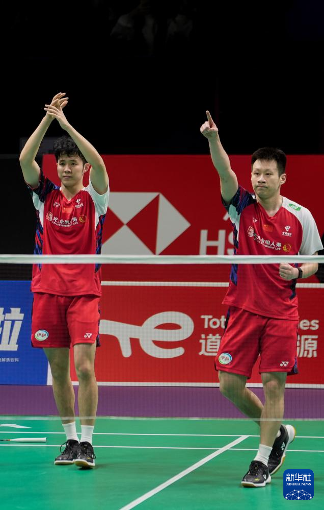 何济霆/任翔宇(前)在男子双打比赛后庆祝获胜(图/新华社)
