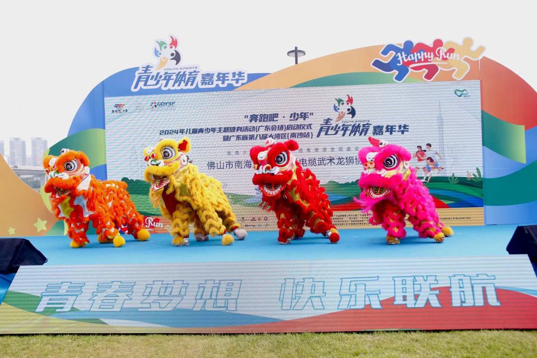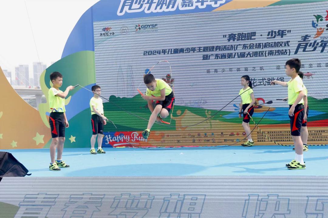 5月18日,“奔跑吧·少年”2024年儿童青少年主题健身活动(广东会场)启动仪式暨广东省第八届大湾区青少年体育嘉年华在广州市南沙区明珠湾灵山岛水舞广场举行。奥运冠军杨维、罗玉通亲临现场,与广大青少年朋友共赴一场体育+科技赋能+非遗文化+旅游美食的盛会。