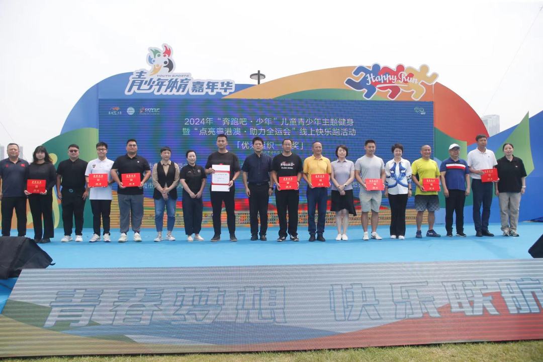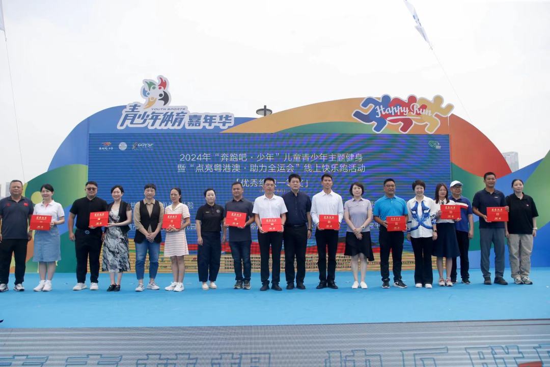 在精彩纷呈的水陆体育项目表演交相辉映之下,2024年“奔跑吧·少年”儿童青少年主题健身活动(广东会场)正式启动,同时发布含超过240项内容的广东省2024年“奔跑吧·少年”儿童青少年主题健身活动计划,并为获得2024年“奔跑吧·少年”儿童青少年主题健身暨“点亮粤港澳·助力全运会”线上快乐跑活动优秀组织一等奖单位颁奖。