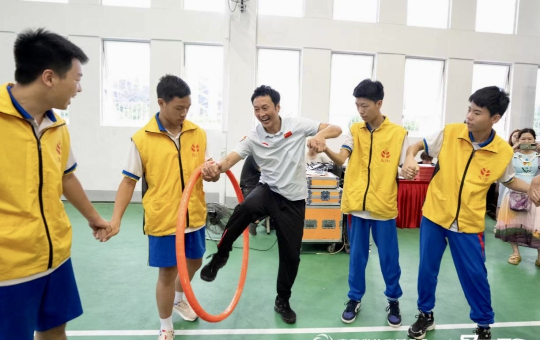 两位冠军亲自“挂帅”,与同学们进行了趣味互动“ 圈到底”,带领自己的队伍进行了一场考验身体协调能力与配合的小竞赛,现场欢呼声不断,将活动氛围推向了高潮。