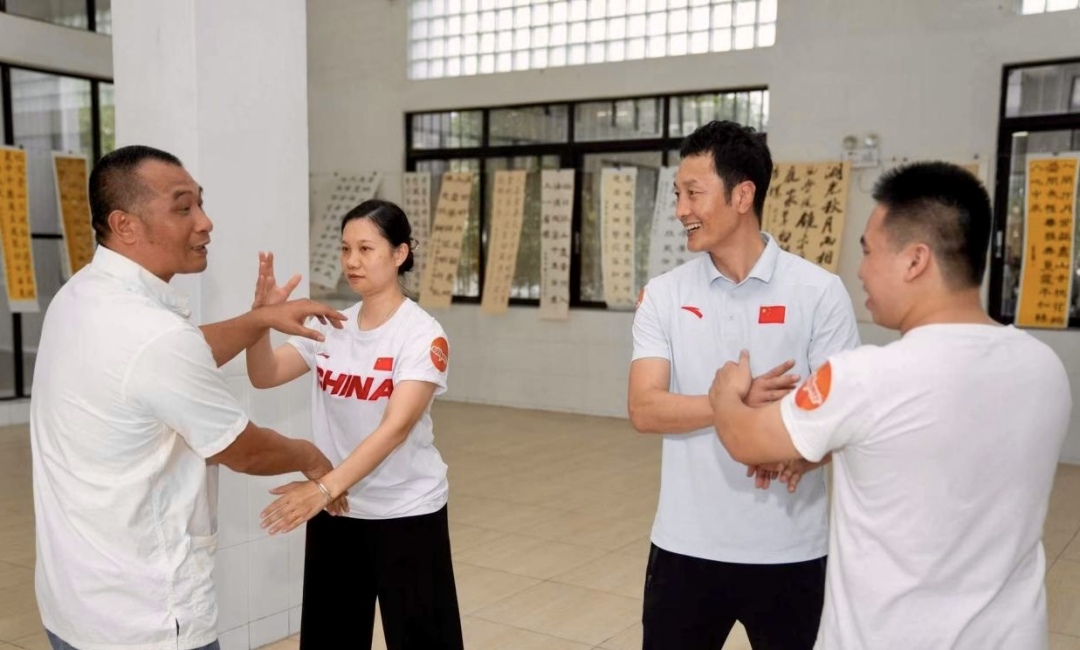 鹤山市沙坪中学将“五育并举”“三全育人”落到实处,要求每一个学生打好“咏春操”,把咏春拳的武德和创新精神融入未成年人思想道德建设。本次活动中,该校特别设置了偏身咏春拳表演。两位冠军与嘉宾们一同参观了校史荣誉室,了解该校以“体”育人、以“艺”感人的教学观念,并与鹤山咏春大师秦卫杰、秦浩坤切磋交流,与同学面对面互动,传授武术知识。