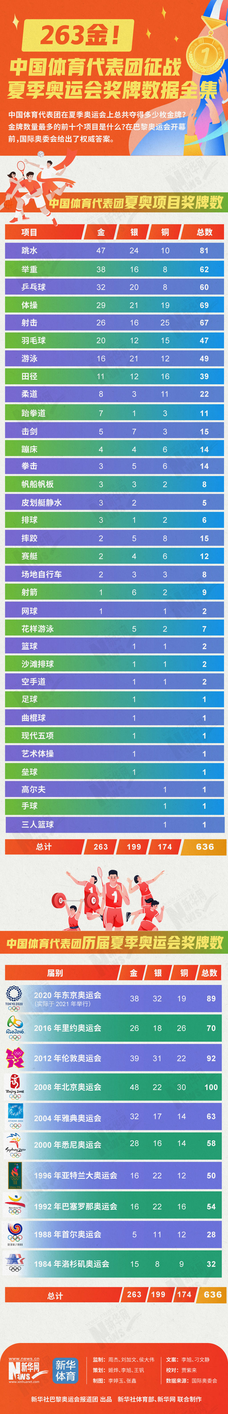 中国体育代表团在夏季奥运会上总共夺得多少枚金牌?金牌数量最多的前十个项目是什么?在巴黎奥运会开幕前,国际奥委会给出了权威答案。