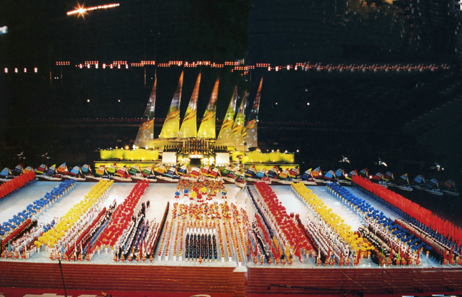 2001年11月11日,第九届全国运动会在广东奥林匹克体育场开幕。图为大会开幕式 来源:《广东省志(1979—2000)·体育卷》