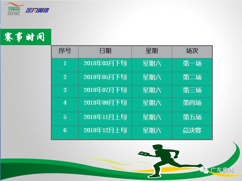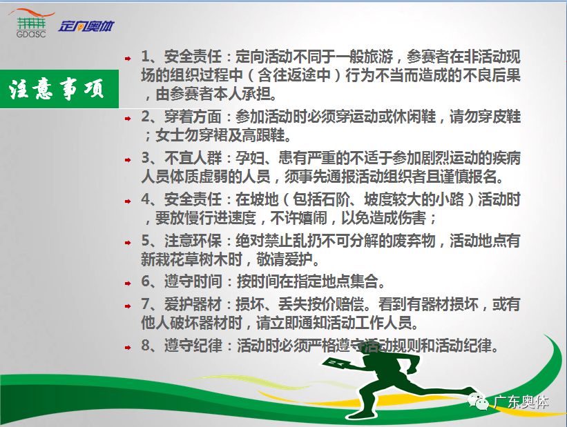 (三)各场次比赛详细规程将列为补充通知,请登陆公众微信平台:广东奥体或公众微信平台“广东定向”进行查看。