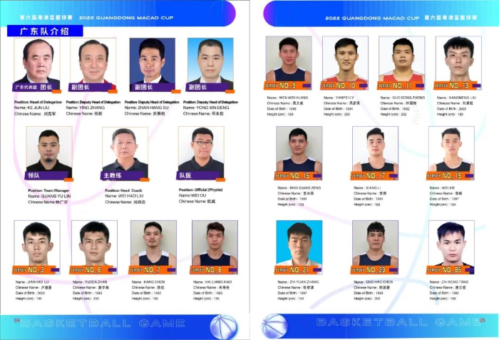 广东队球员参赛名单:黄文威、肖海亮、曾冰强、陈国豪、詹宇森、刘康能、卢健豪、李翔、钟国栋、谢威、唐志铿、陈航、吕彦佩、张智渊。