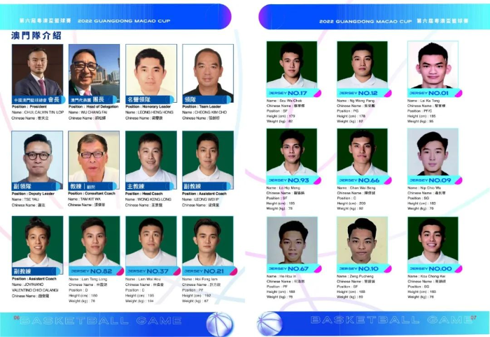 澳门队球员参赛名单:林霆朗、罗协铭、林伟豪、陈伟诚、许方歆、聂钊华、苏华泽、何浩然、吴荣鹏、曾谱诚、黎家栋、高颂祺。