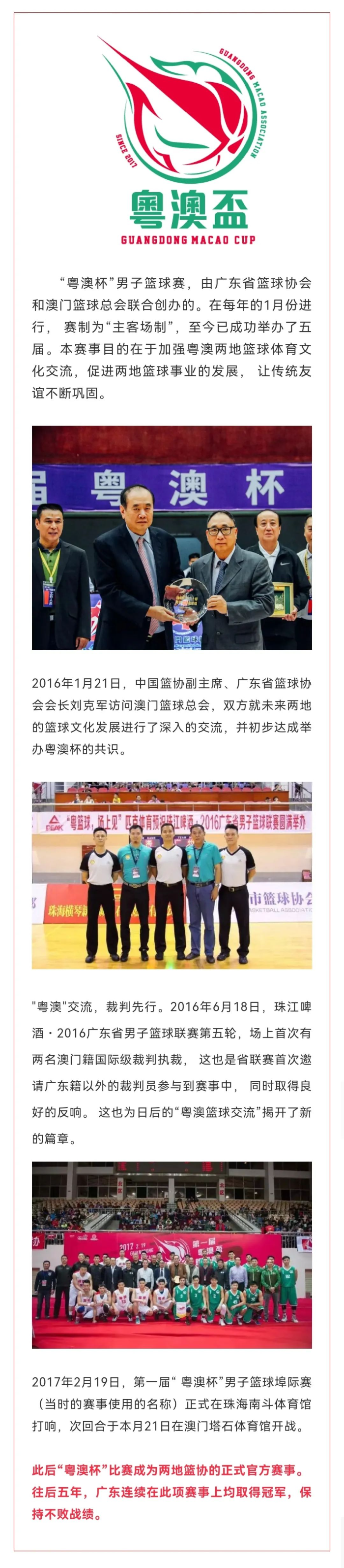 赛制为“主客场制”,至今已成功举办了五届。本赛事目的在于加强粤澳两地篮球体育文化交流,促进两地篮球事业的发展, 让传统友谊不断巩固。