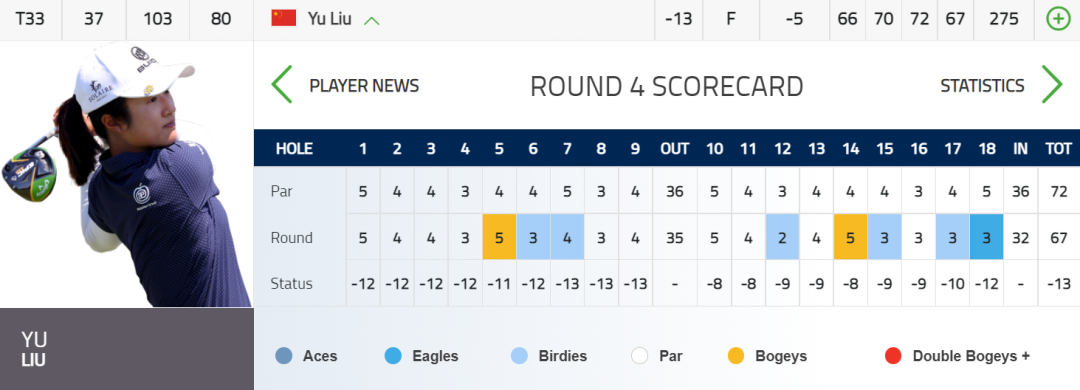 广东高尔夫球员林希妤刷新个人女子美巡最佳成绩