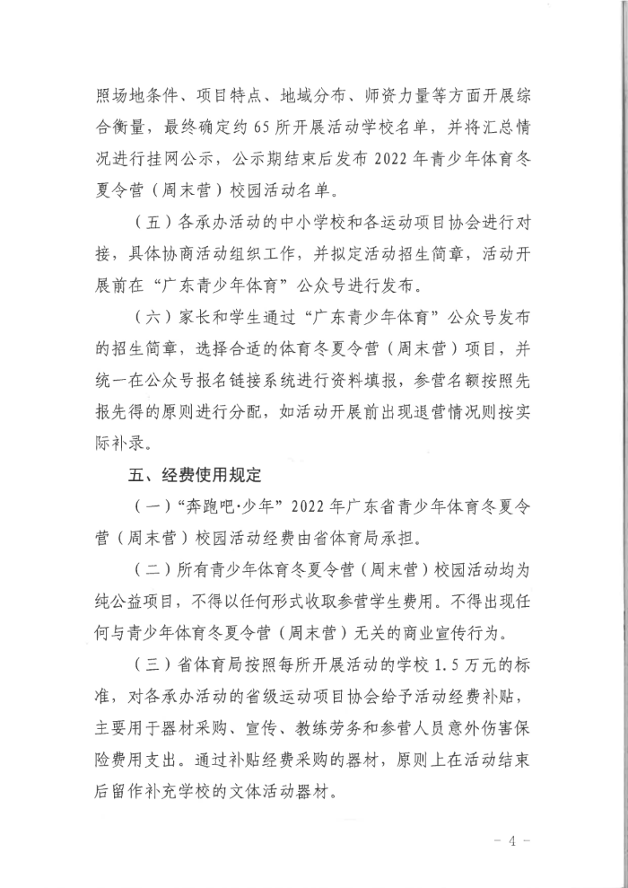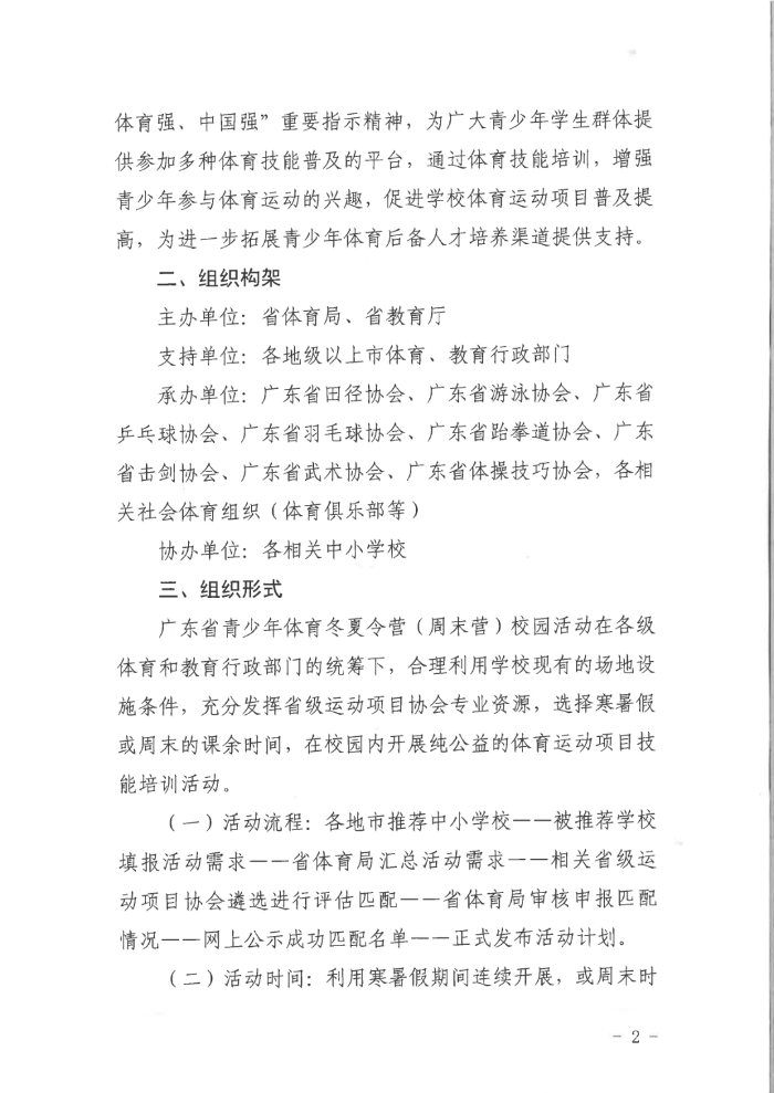 2022年广东省青少年体育冬夏令营(周末营)校园活动上线