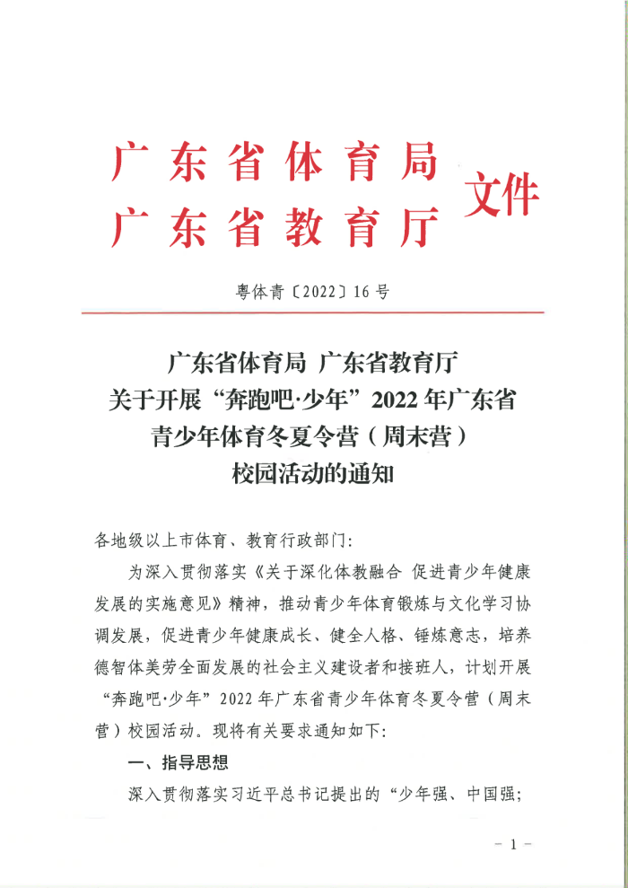 更多本次活动细则,请查看《广东省体育局 广东省教育厅关于开展“奔跑吧·少年”2022年广东省青少年体育冬夏令营(周末营)校园活动的通知》。