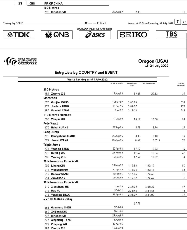 苏炳添领衔,中国队田径世锦赛参赛阵容公布