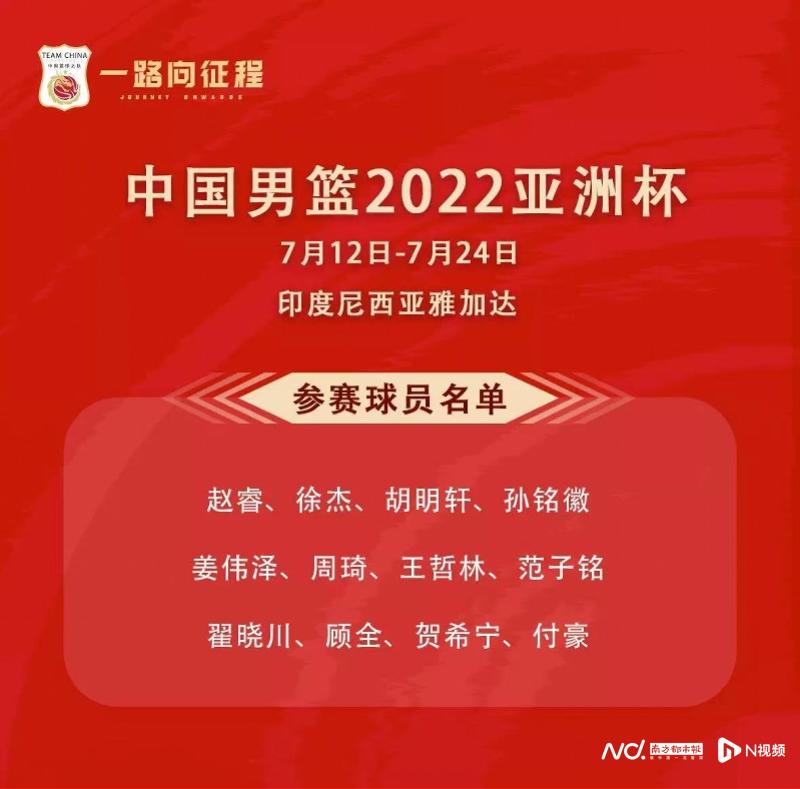 中国男篮公布亚洲杯12人名单,宏远三后卫深圳双子星在列