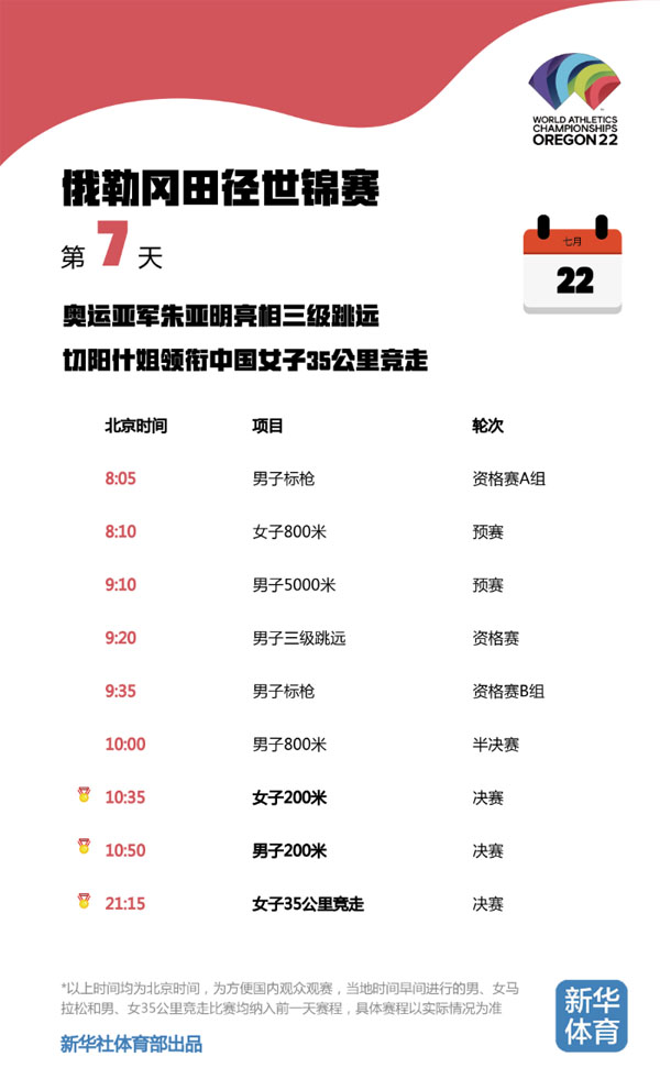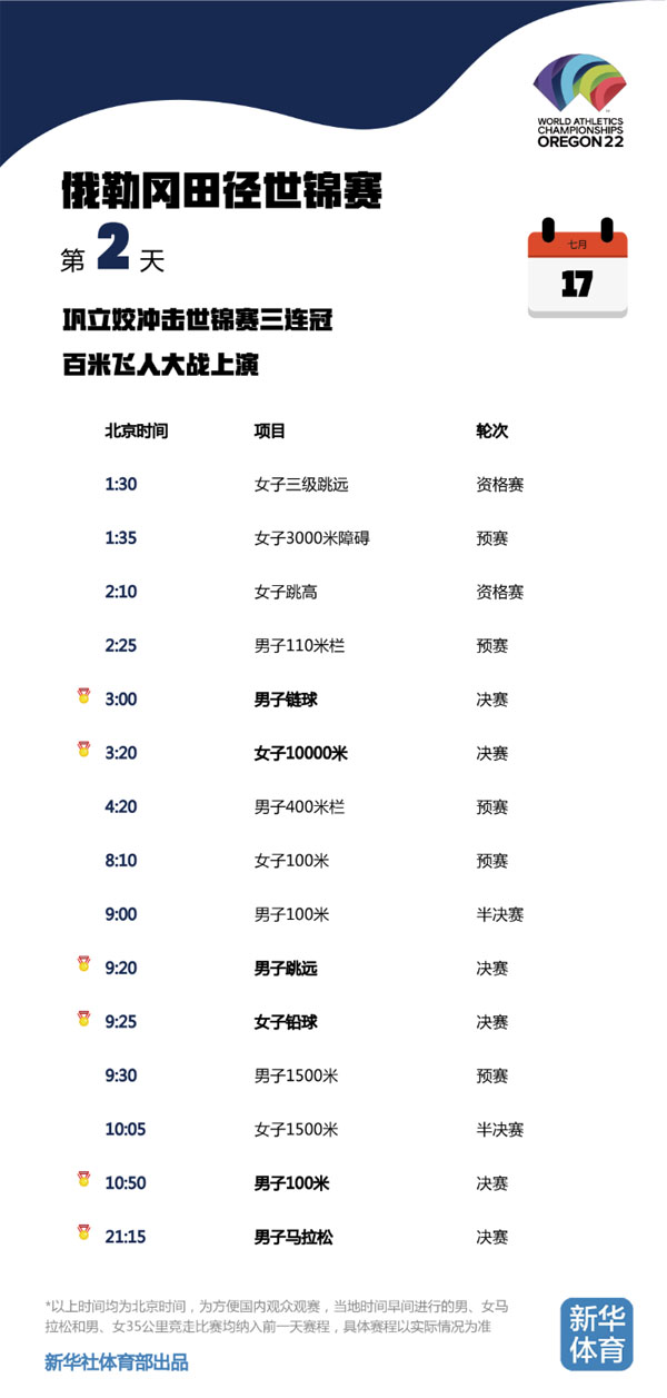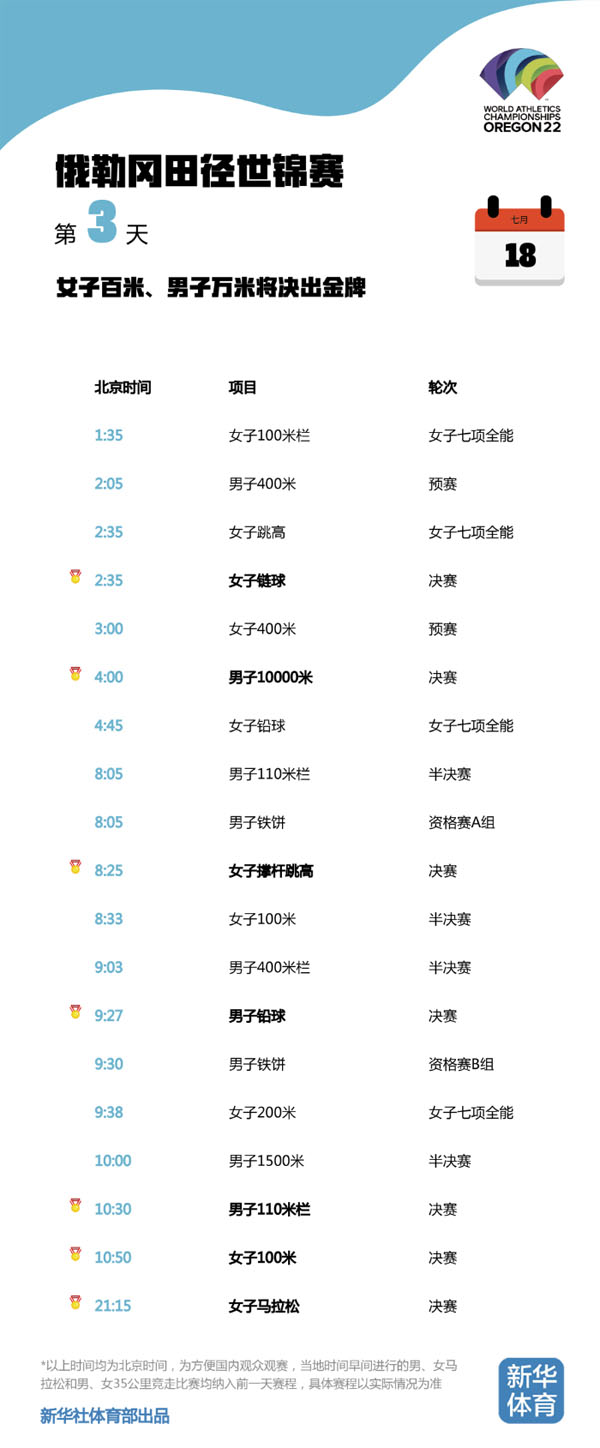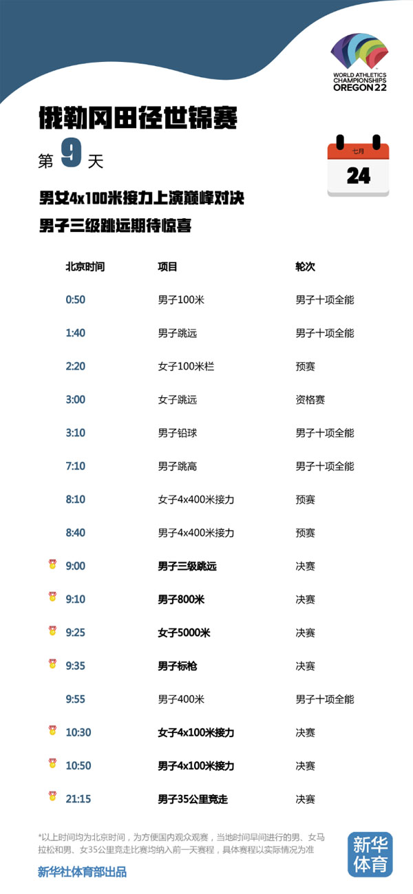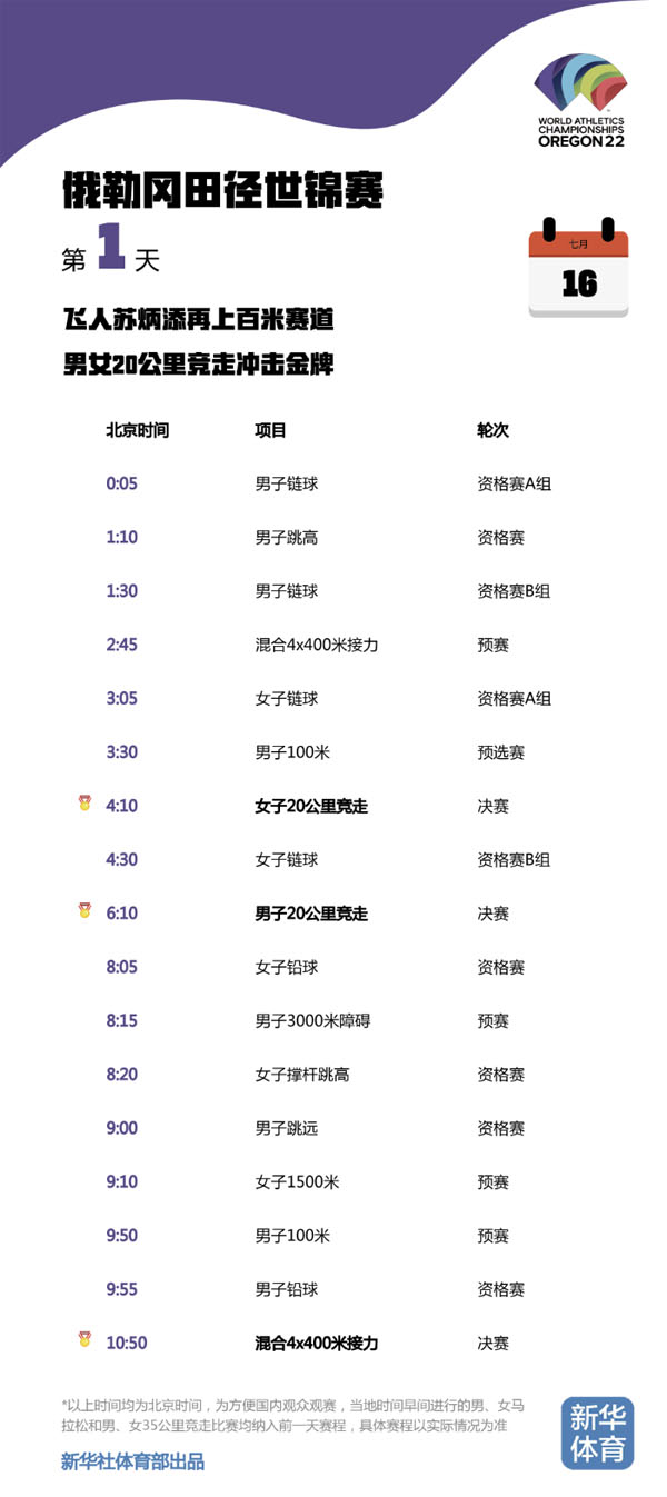 时差算不清?北京时间版2022田径世锦赛赛程表来了