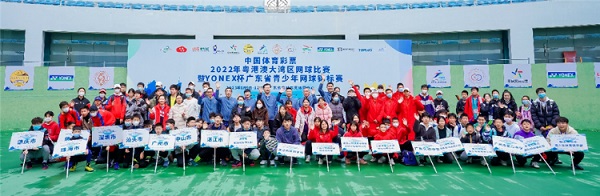 广东省社会体育和训练竞赛中心主任蔡建祥、广东省奥林匹克体育中心主任赖浩亮、广东省社会体育和训练竞赛中心副主任吕璇、广东省网球协会副主席贺东波、广东省网球协会副主席曾毓昌、广东省网球协会秘书长黄华文、尤尼克斯(上海)体育用品有限公司穿线团队S1级赵景生等嘉宾共同出席了赛事的开赛仪式,并为赛事开出第一球,这也标志着中国体育彩票2022年粤港澳大湾区网球比赛暨YONEX杯广东省青少年网球锦标赛正式开赛。