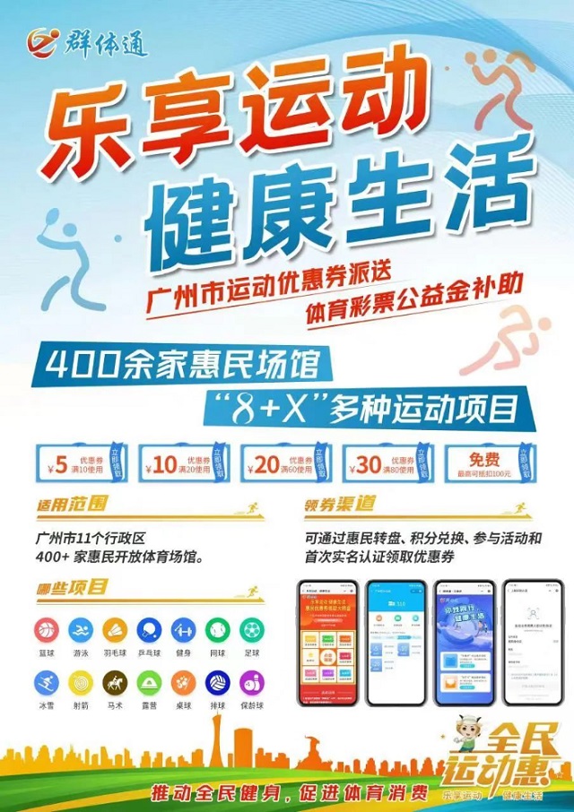 阳春三月,群体通继续派发运动福利!广州市体育彩票公益金支持,订场运动享优惠。赶紧约上小伙伴,一起领券“动起来”~