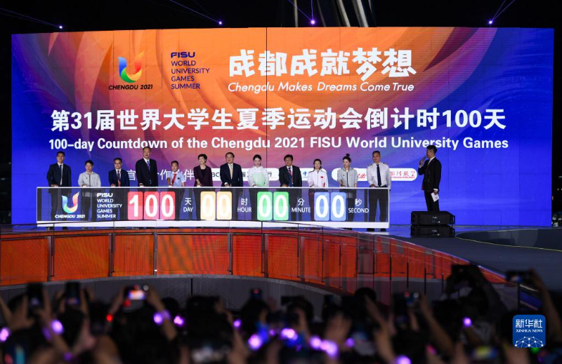 4月19日,嘉宾共同见证成都大运会倒计时100天启动仪式。图/新华社