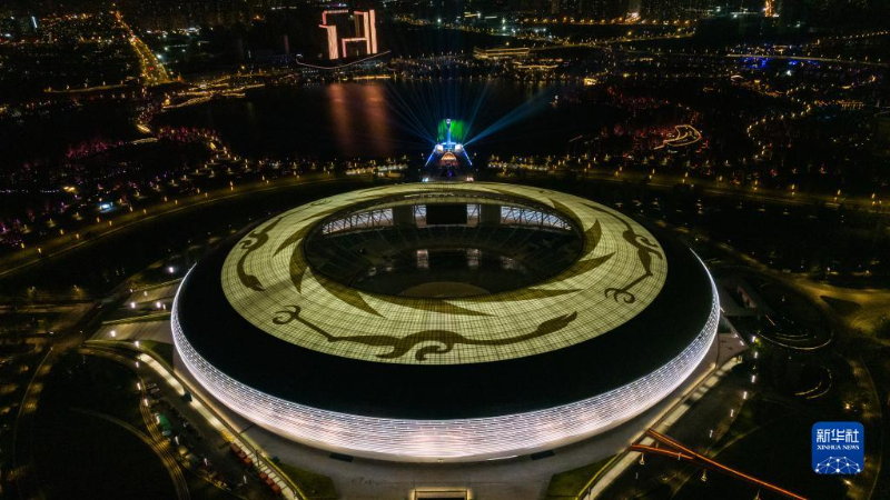 4月19日拍摄的第31届世界大学生夏季运动会开幕式主体育场及主火炬。图/新华社