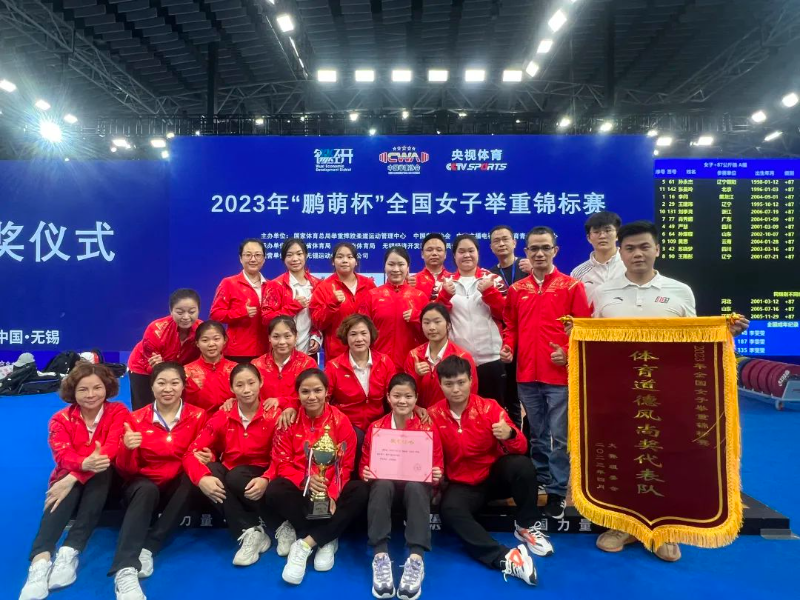 2023全国女子举重锦标赛4月19日落幕。广东女举在全部10个小项中获得5金5银2铜,团体总分第一,1人获得最佳运动员称号,2人获得体育道德风尚奖运动员称号,全队也获得体育道德风尚运动队称号。