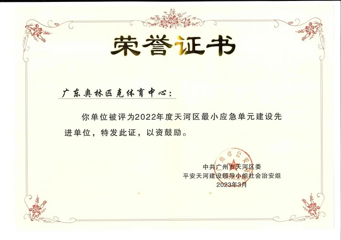 广东奥体中心荣获“2022年度天河区最小应急单元建设先进单位”称号