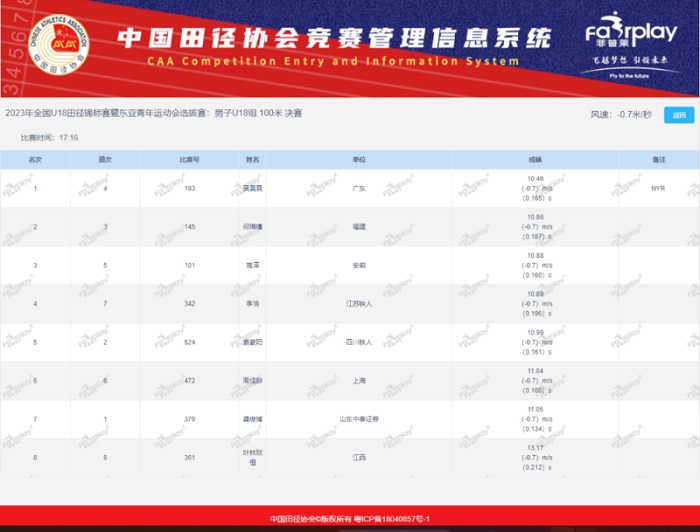 星动向 | 广东小将吴昊霖一日三赛破男子百米全国纪录