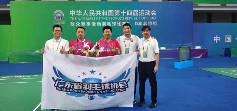 中华人民共和国第十四届运动会群众赛事活动羽毛球比赛于5月30日在湖北荆州落幕。广东代表队潘登、王洋在比赛击败东道主选手,以9战全胜的成绩夺得第十四届运动会羽毛球群众C组男子双打冠军,这也是广东羽毛球历史上第一个全运会羽毛球群众组冠军。
