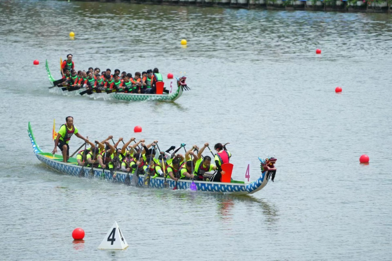 “哔!咚!咚!咚……”随着阵阵鼓声响起,一艘艘插上旗帜的龙舟乘风破浪、竞渡争流,来自大湾区各个队伍的“精兵强将”劈波斩浪、奋楫前行,淡水湖两侧的欢呼呐喊声此起彼伏、声势浩荡……