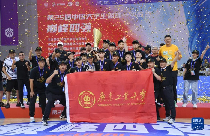 6月18日,冠军广东工业大学队成员在夺冠后庆祝(图/新华社)